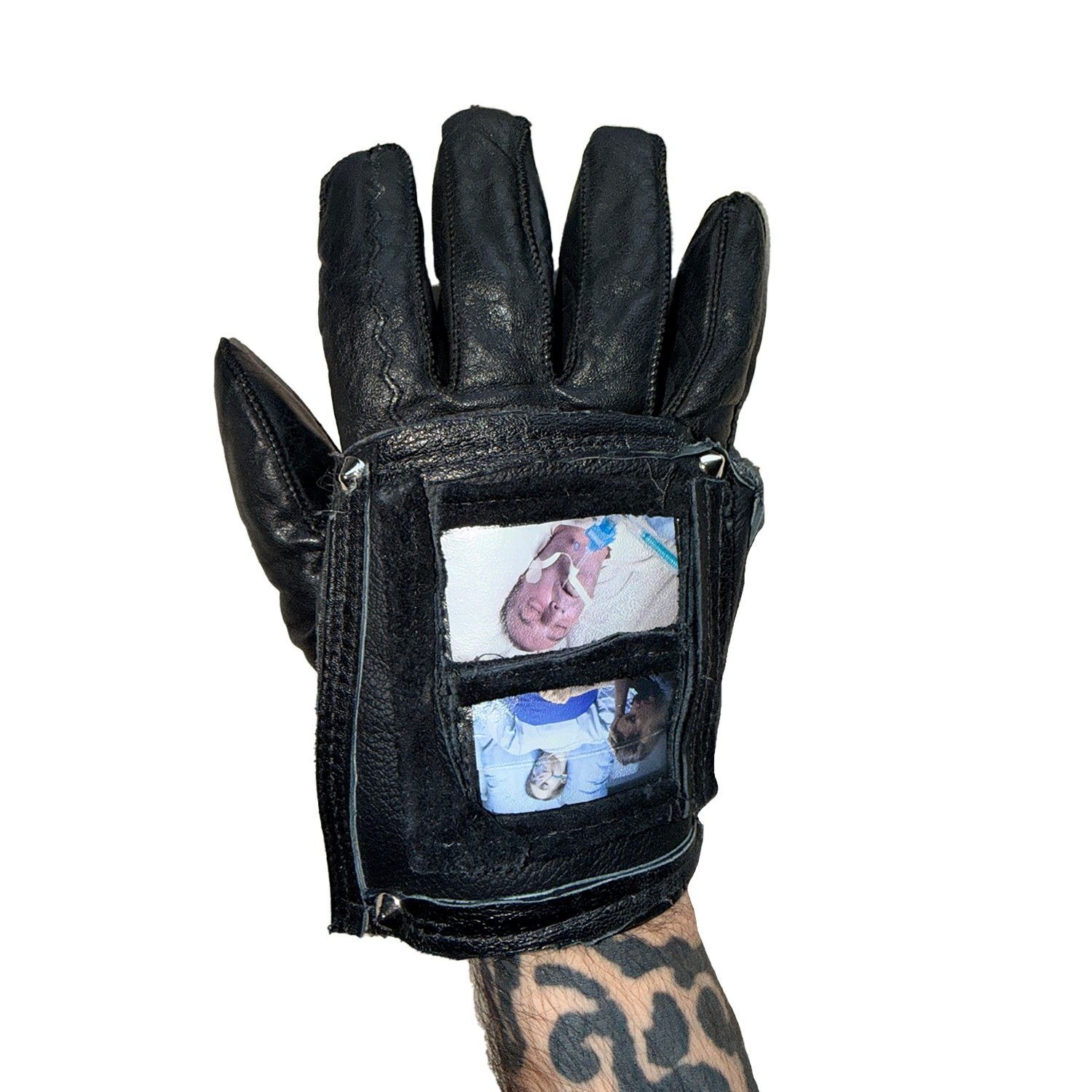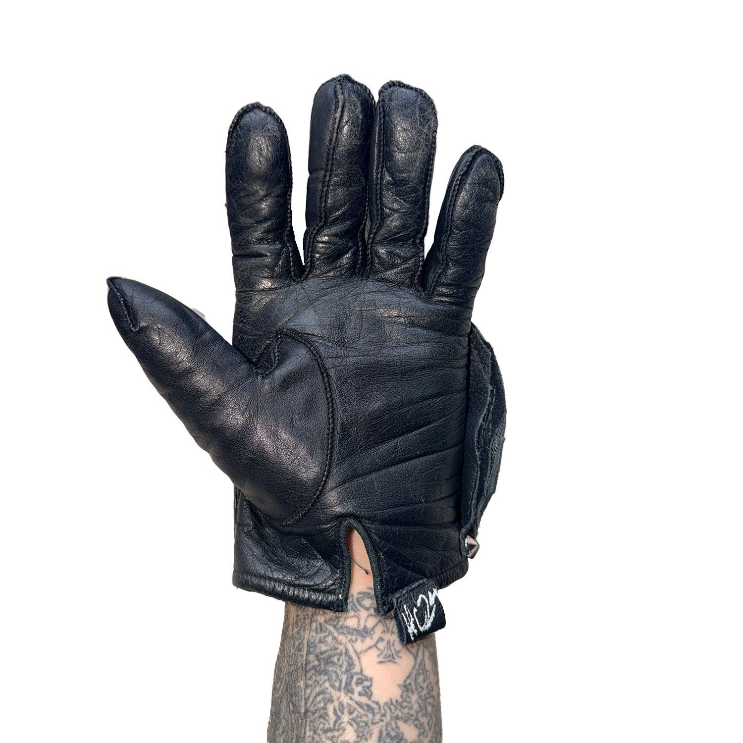 NAME: DR MOTO GLOVES SIZE: L FIT: Snug FABRIC & MATERIALS: Genuine leather, Wool mesh DESIGN DETAILS: Metal studs, Cigaette Team Double Patch on each glove,