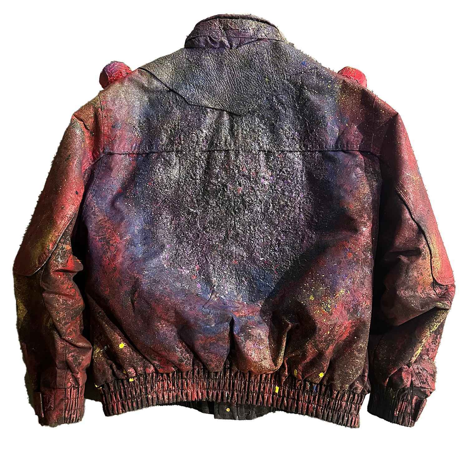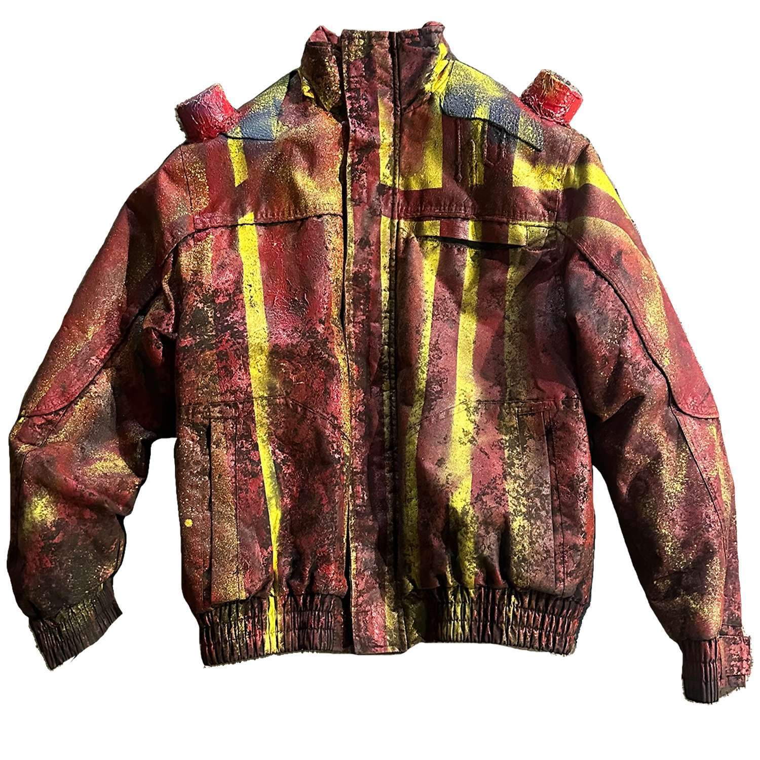 NAME: MARAUDER BOMBER SIZE: L FIT: Normal fit FABRIC & MATERIALS: Shell, painted with DW's hydrophobic rubber and alcohol based ink. DESIGN DETAILS: Yellow cross design, 3d texture, galaxy design on back STORY: Part of the Niko Cascada x DemonWear's "Сложна Мода" 2025 Collection