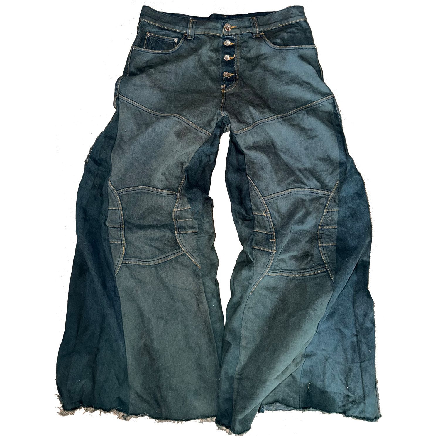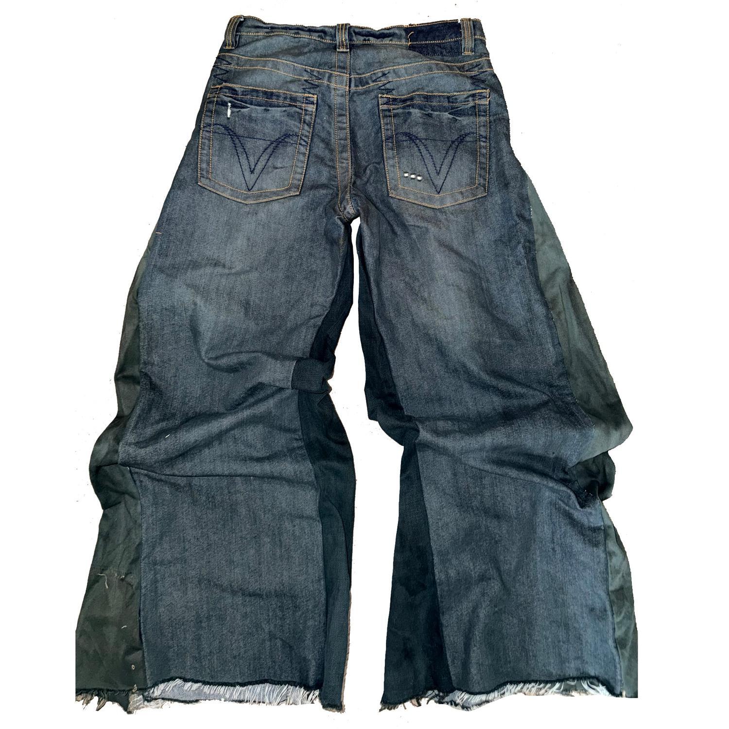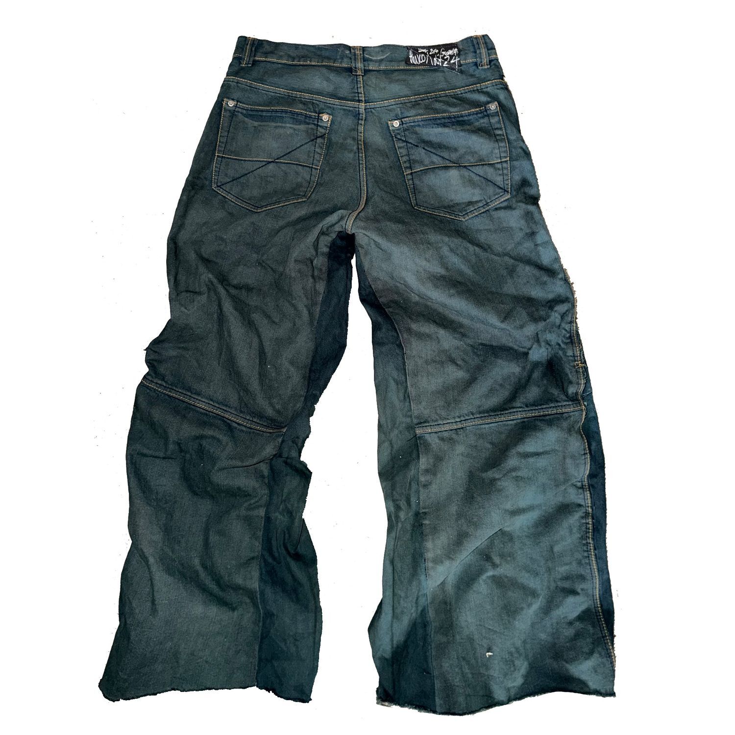 NAME: SYLVESTER'S STUDDED DENIM SIZE: 34x34 FIT: Baggy Fit FABRIC & MATERIALS: 100% COTTON DESIGN DETAILS: Steel zippers, metallic studs, Duoflare, "ТЪПАК" yellow print, Black logomania prints STORY: I robbed these jeans off of Sylvester