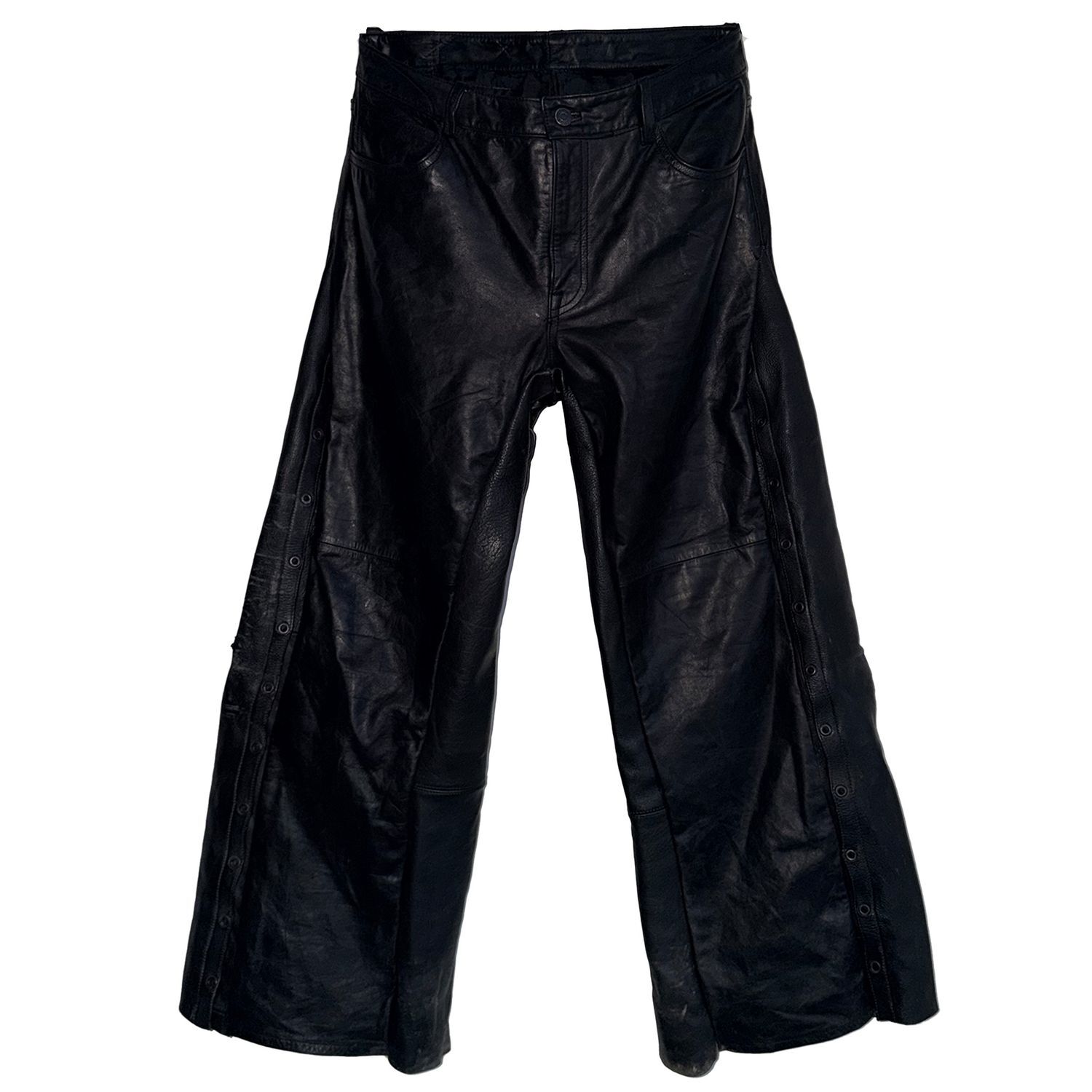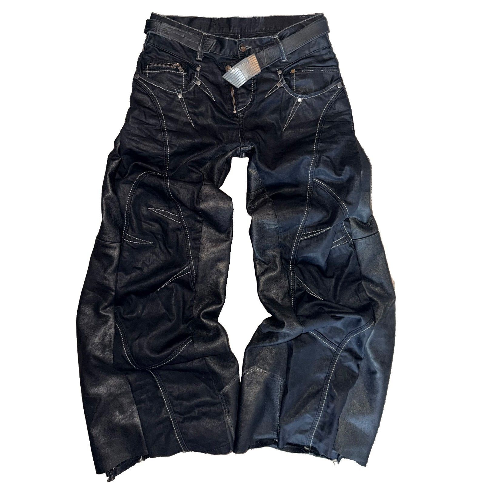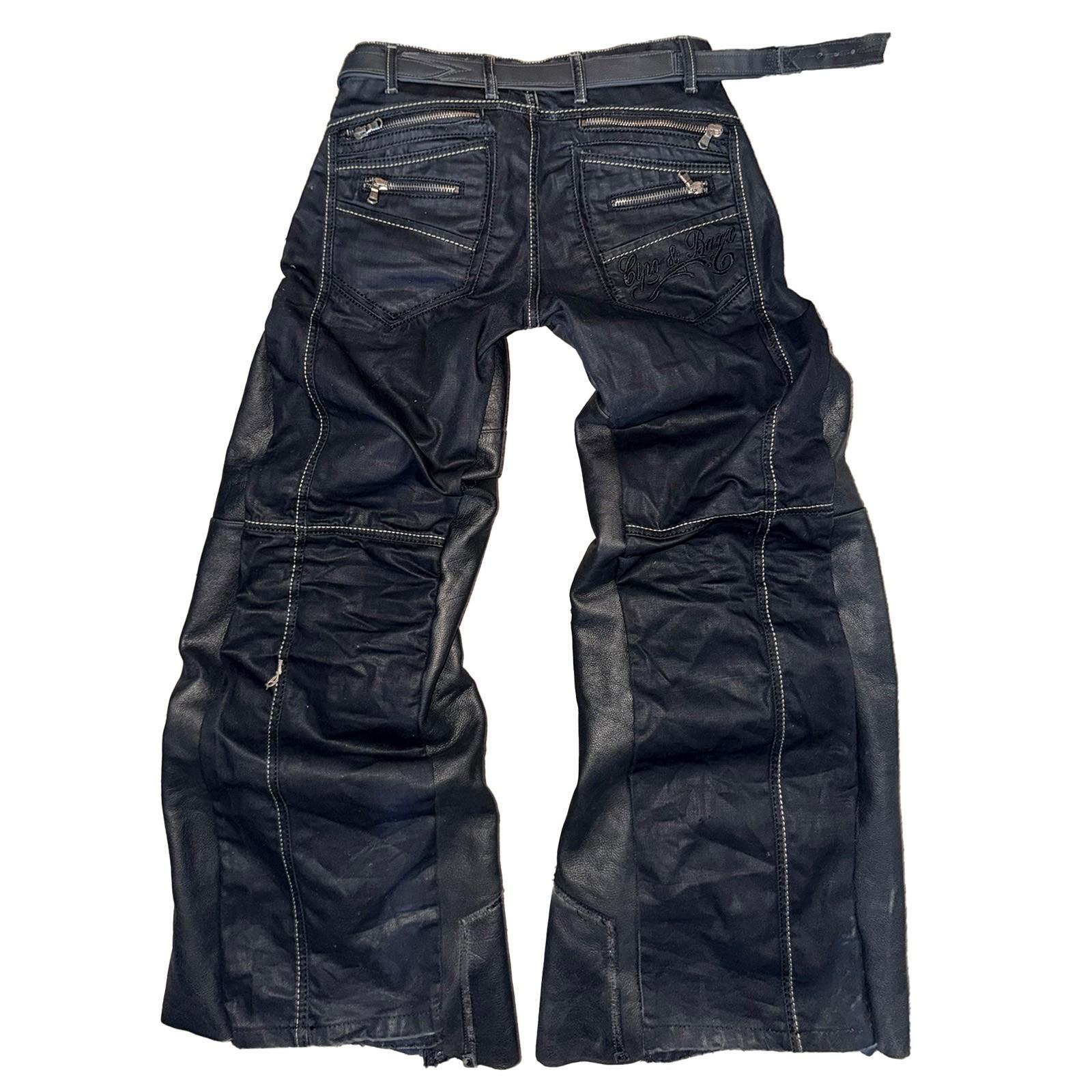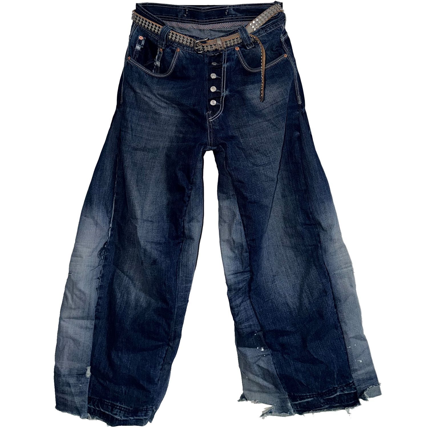 NAME: SYLVESTER'S STUDDED DENIM SIZE: 34x34 FIT: Baggy Fit FABRIC & MATERIALS: 100% COTTON DESIGN DETAILS: Steel zippers, metallic studs, Duoflare, "ТЪПАК" yellow print, Black logomania prints STORY: I robbed these jeans off of Sylvester