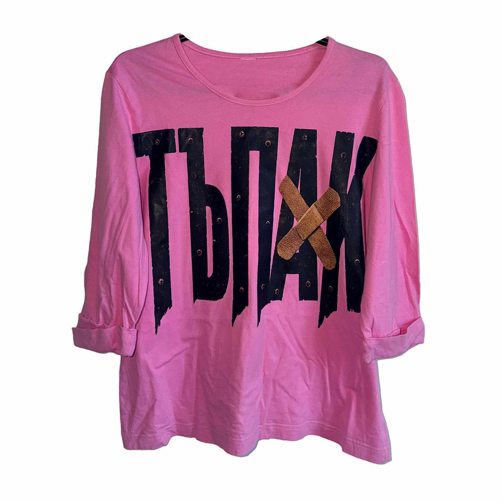 NAME: "ТЪПАК" TEE SIZE: L FIT: True to size FABRIC & MATERIALS: 100% Cotton DESIGN DETAILS: "ТЪПАК" print, bandage across text Estimated Delivery Times: Bulgaria: 3–7 business days International: 7–14 business days