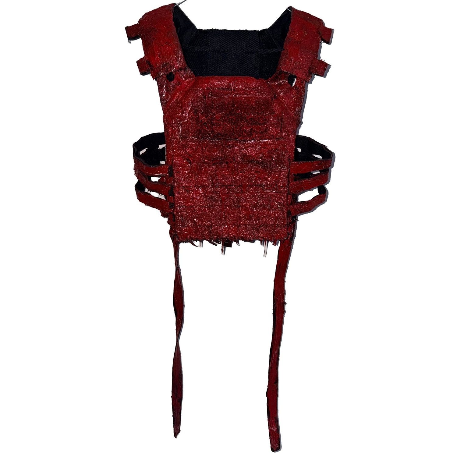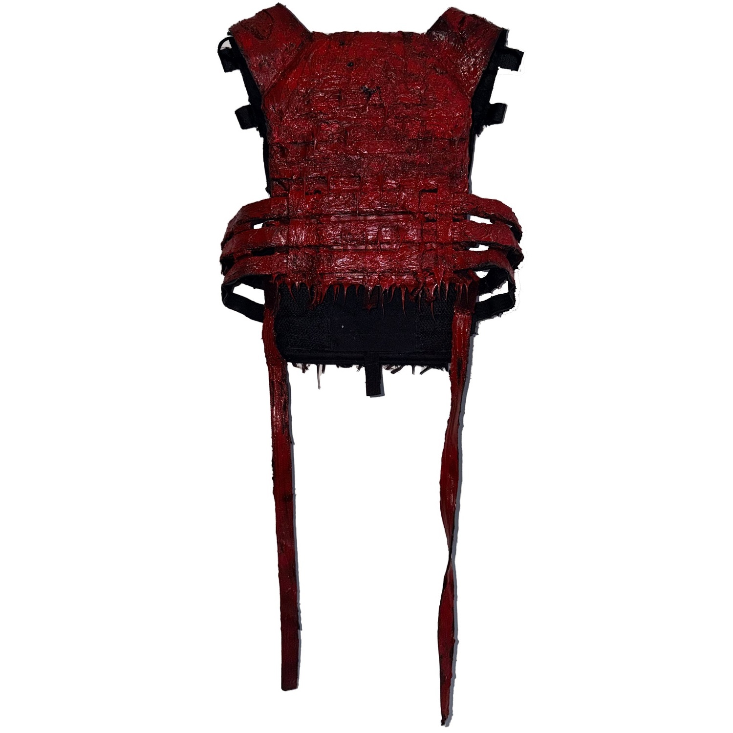 Velcro adjustable Kevlar, comes with padded plate. NAME: KEVLAR FOR DECEMBER 2049 SIZE: ONE SIZE/ ADJUSTABLE FIT: FABRIC & MATERIALS: Cordura, waterproof DESIGN DETAILS: 3D Demonwear symbiote stuff STORY: Part of the Niko Cascada x DemonWear's "Сложна Мода" 2025 Collection