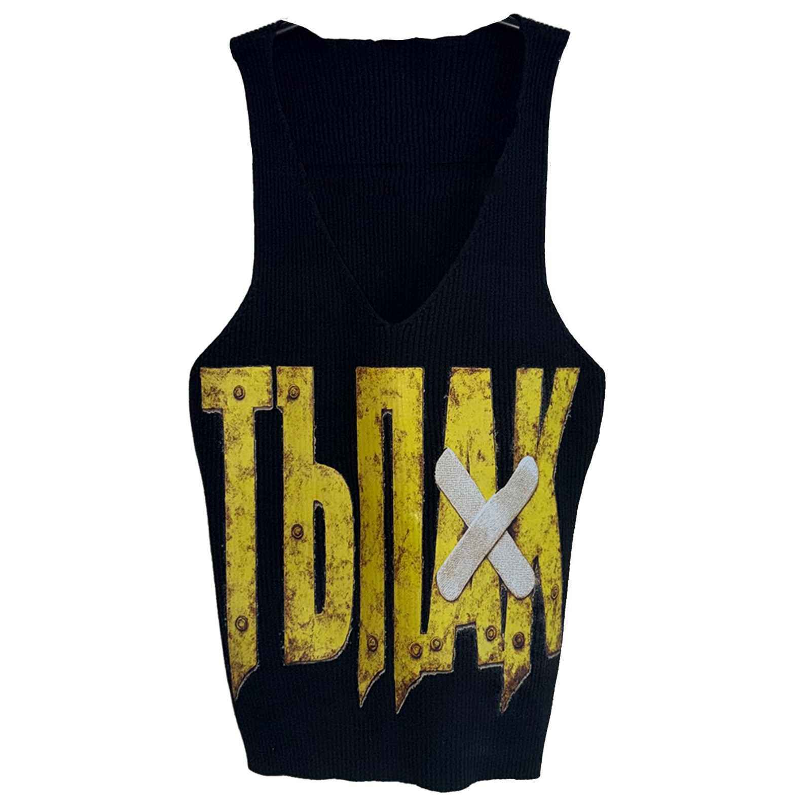 NAME: "ТЪПАК" TANK TOP SIZE: XS-S FIT: Slim FABRIC & MATERIALS: Cotton DESIGN DETAILS: "ТЪПАК" print, bandage across text Estimated Delivery Times: Bulgaria: 3–7 business days International: 7–14 business days