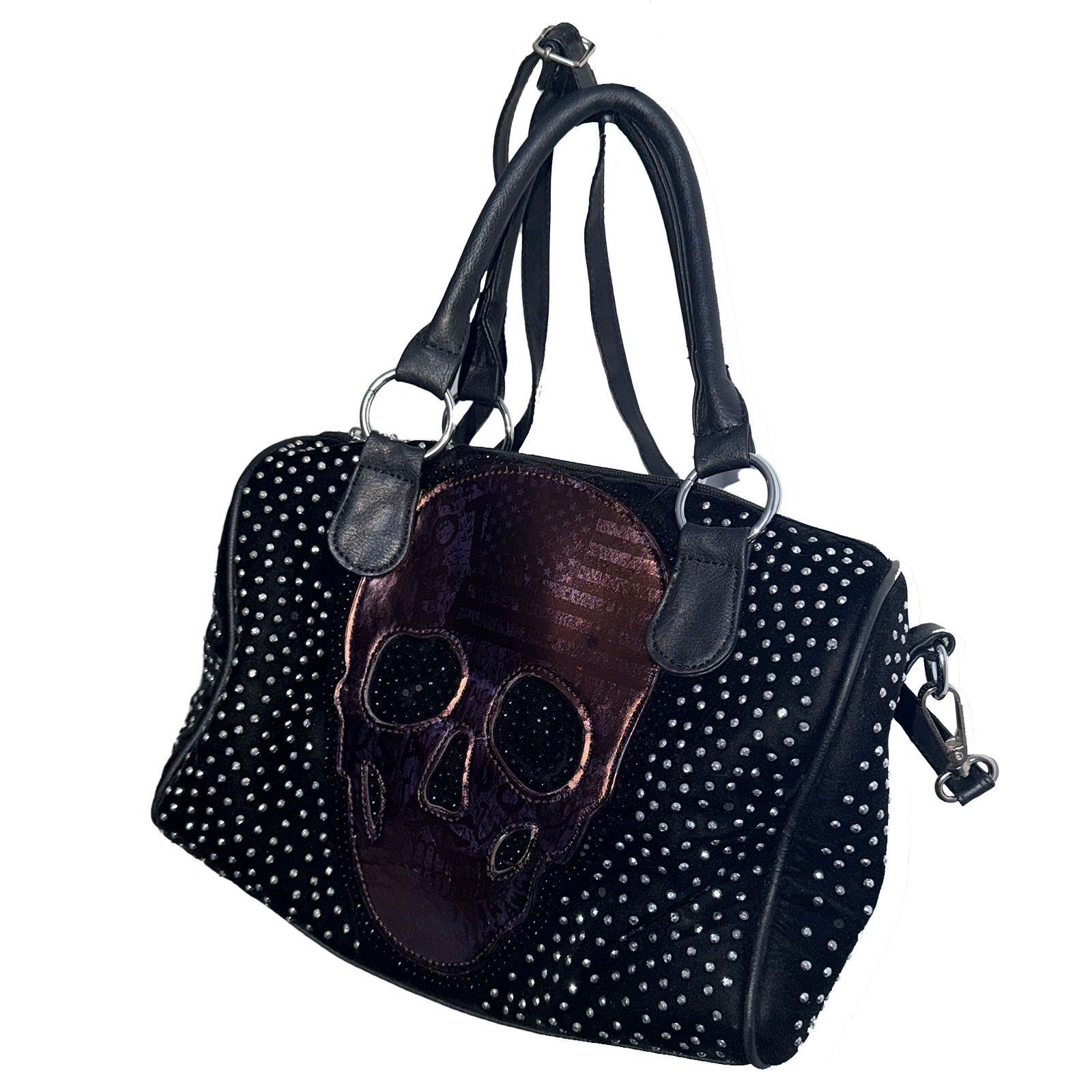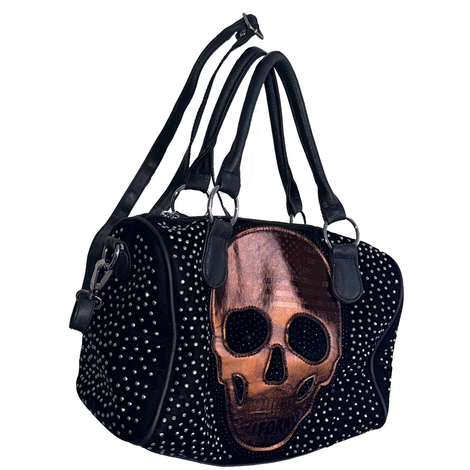 NAME: KID BRONZE SMALL DUFFLE SIZE: One-size FABRIC & MATERIALS: Vegan leather, metal studs DESIGN DETAILS: Metal studs, Bronze skull NOTE: It's as big as your average womens bag, it will fit your everything compactly
